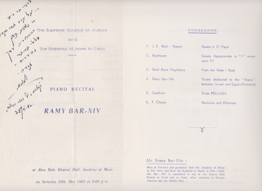 נקודת השיא שלי היא הופעה ראשונה של אמן ישראלי במצרים אחרי הסכמי השלום. הוזמנתי על ידי משרד החוץ לנגן בקהיר, חיברתי יצירה מוסיקאלית לרגל הסכמי השלום וניגנתי אותה, לצערי אין תעוד של הקונצרט אבל זו הייתה חוויה מרגשת.